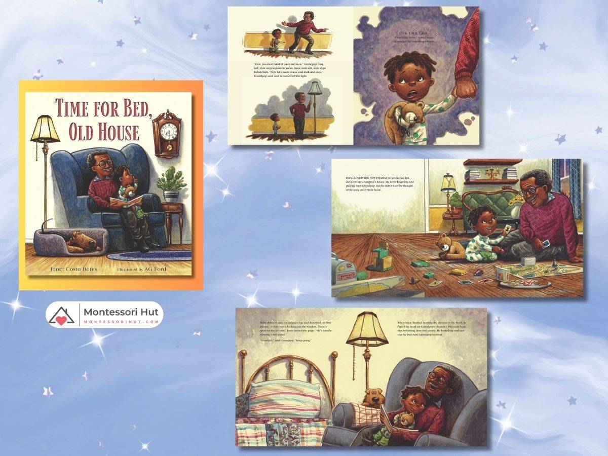On his first sleepover at Grandpop’s house, Isaac is both excited and anxious. Grandpop soothes his nerves by inviting him to help “put the house to bed”—turning off lights, drawing shades, and naming comforting sounds—before reading the house a bedtime story. The familiar “sleepy sounds” of the old house help Isaac settle in with warmth and security.