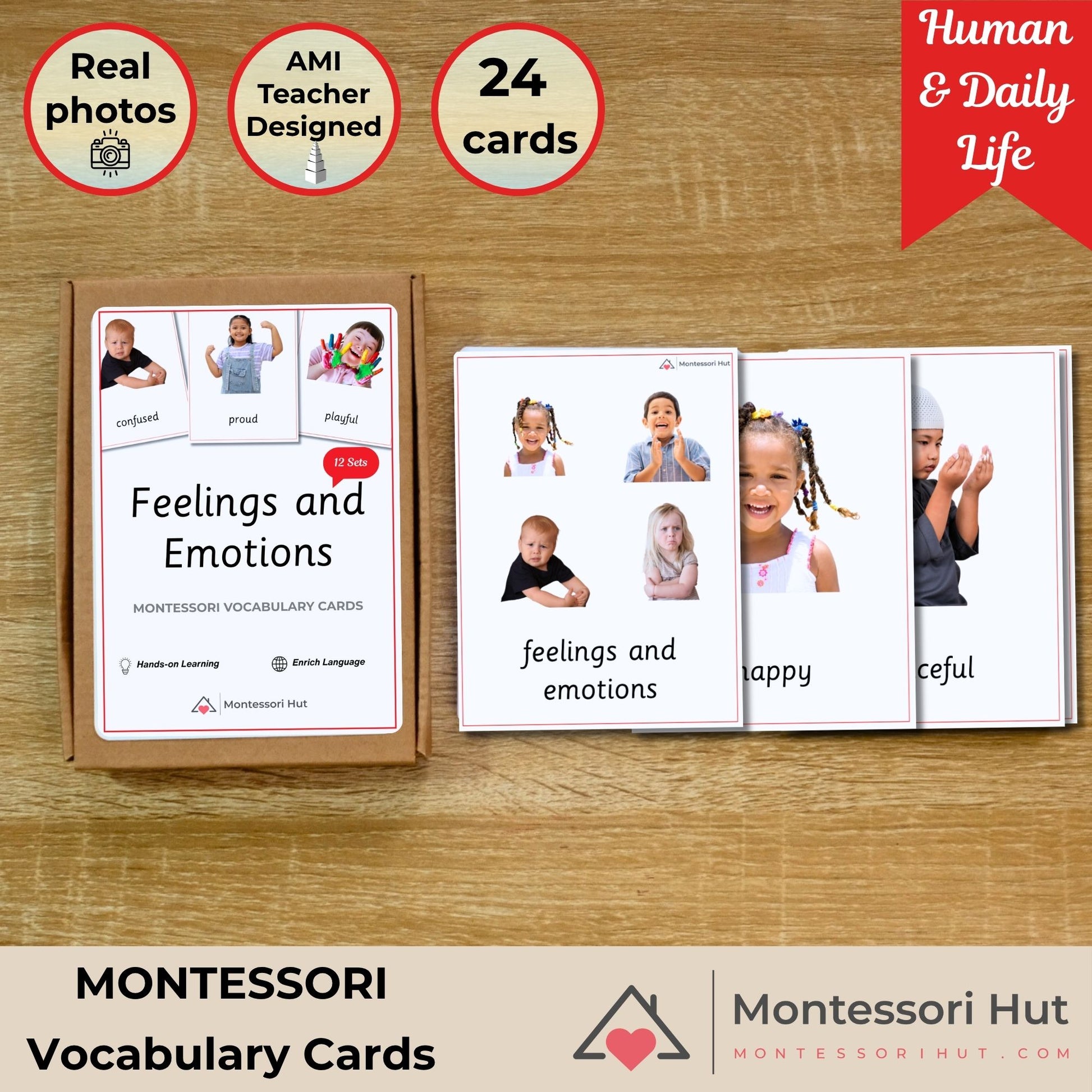 Feelings and Emotions Vocabulary Cards | Flash Cards | Handmade Premium Montessori 3 Part Cards - Building Emotional Intelligence and Vocabulary - 24 Cards